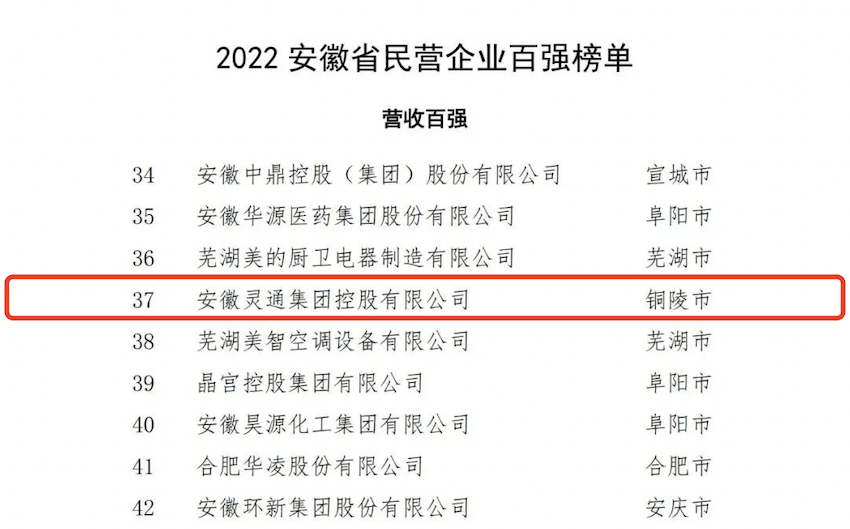 喜讯!安徽灵通集团荣登安徽省民营企业百强双榜单!