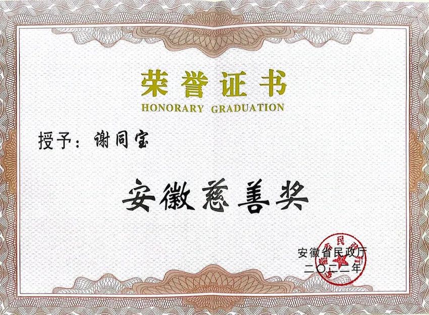 据悉,“安徽省慈善奖”是安徽省委、省政府批准设立的,每三年表彰奖励一次,目的是为深入贯彻《中华人民共和国慈善法》《安徽省实施〈中华人民共和国慈善法〉办法》,弘扬社会主义核心价值观和中华民族传统美德,表彰社会各界奉献爱心、回报社会的慈行善举,进一步促进安徽省慈善事业持续健康发展,全面打造“善行安徽”,助力新阶段现代化美好安徽建设。