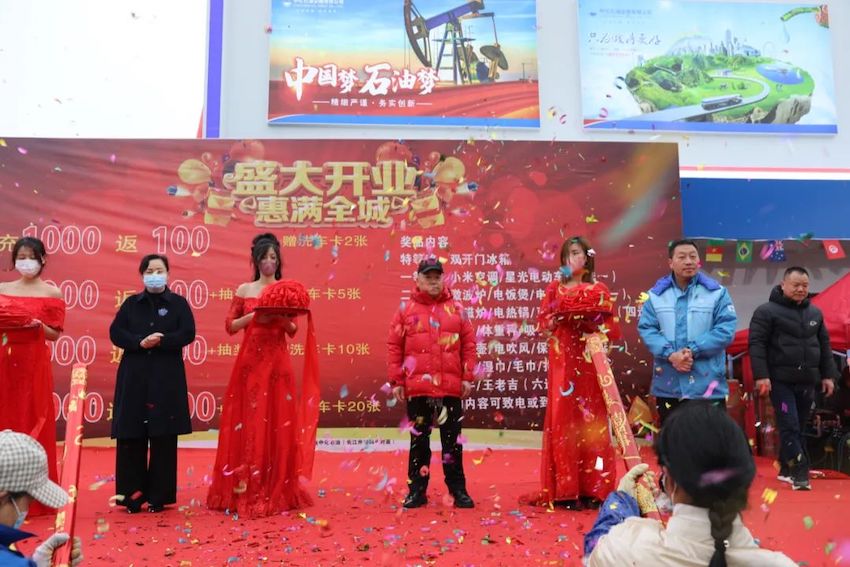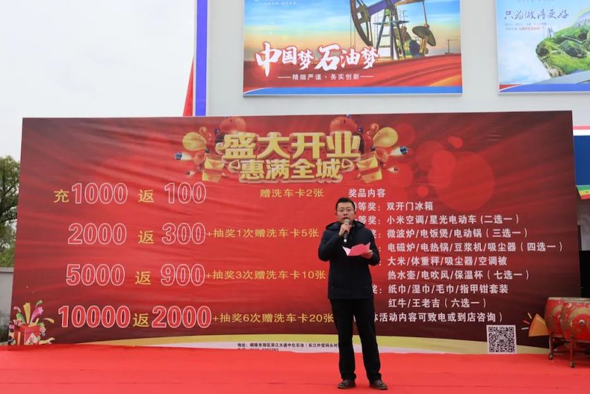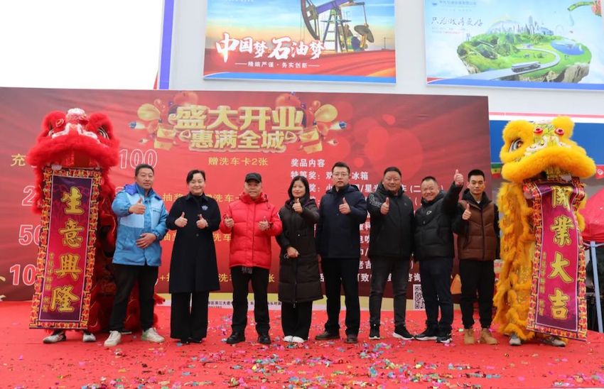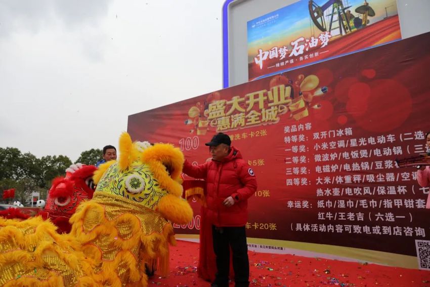 开业典礼上,董事长谢同宝和总经理吴德红进行了“醒狮点睛”仪式,彩旗飘扬、花团锦簇,崭新靓丽的外观形象、整齐漂亮的促销堆头、热情亲切的服务、精彩纷呈的舞狮表演,吸引了大批车主纷纷前来打卡,油站里洋溢着浓烈振奋的开业氛围。