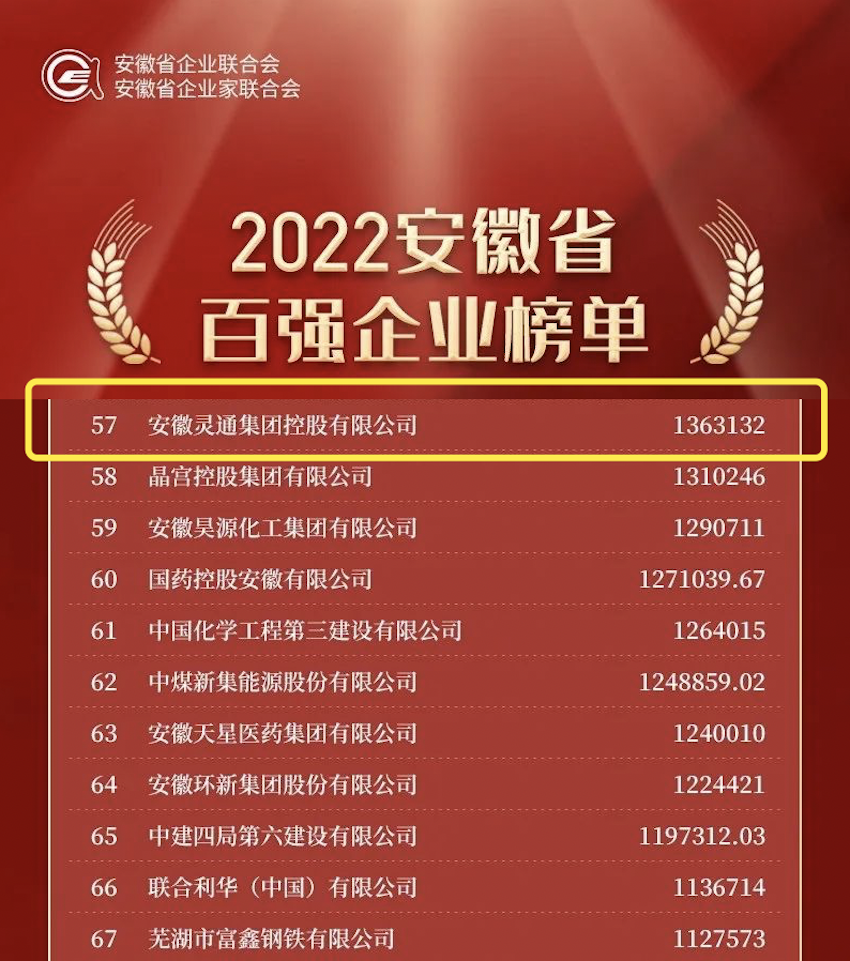 喜报!安徽灵通集团荣登安徽省百强企业双榜单!